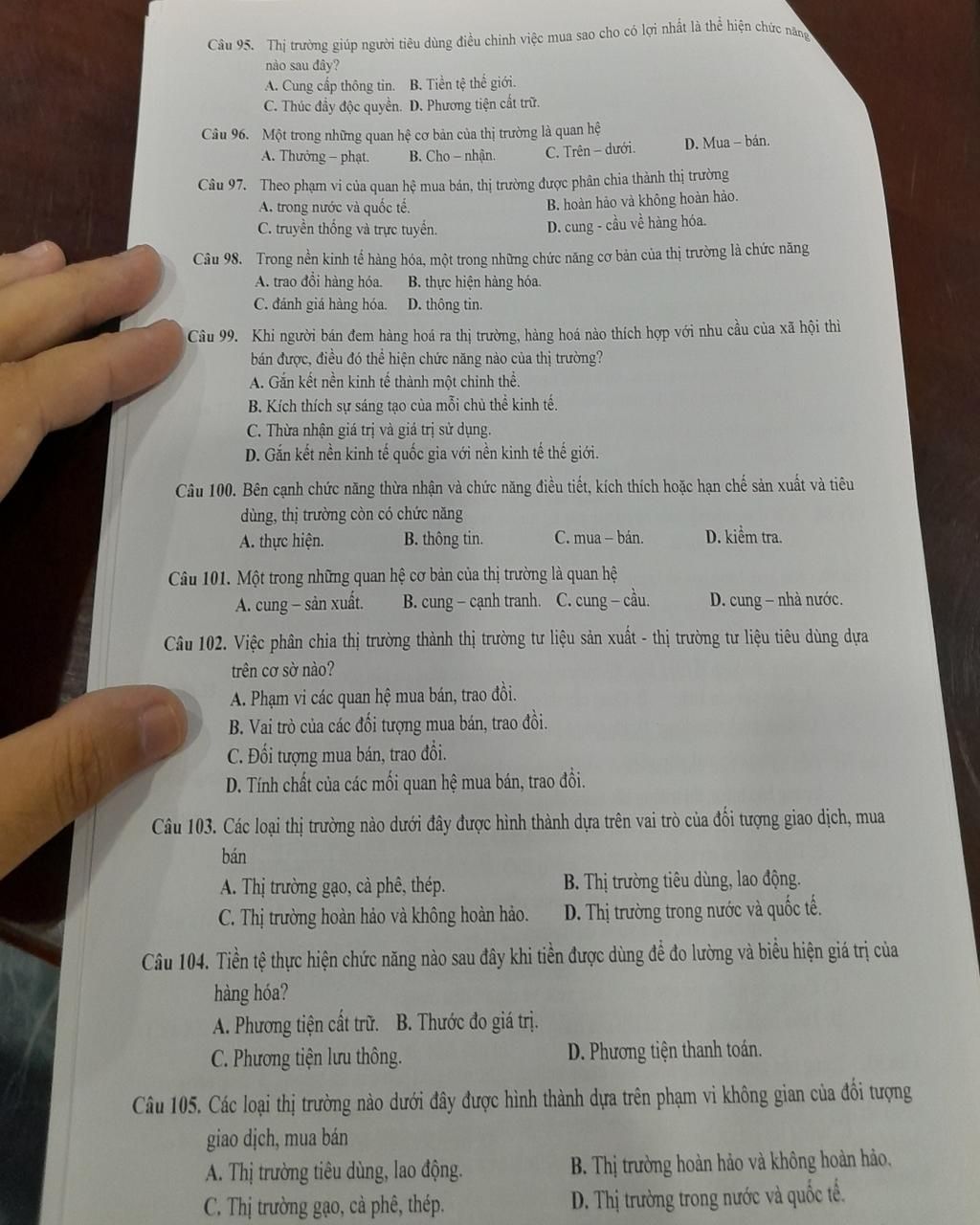 Câu 95. Thị trường giúp người tiêu dùng điều chỉnh việc mua sao cho có lợi nhất là thể hiện chức năng.