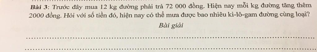 với 72000 đồng mua được số kg đường là: