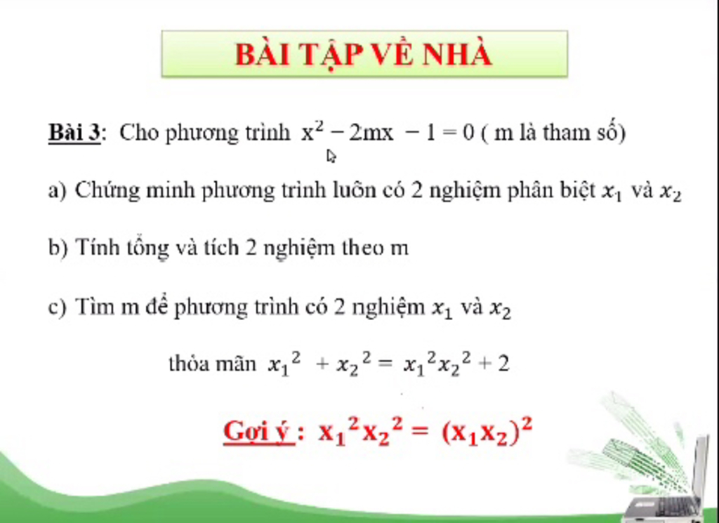 Bài 3: Cho phương trình x² – 2mx -1 = 0 (m là tham số)