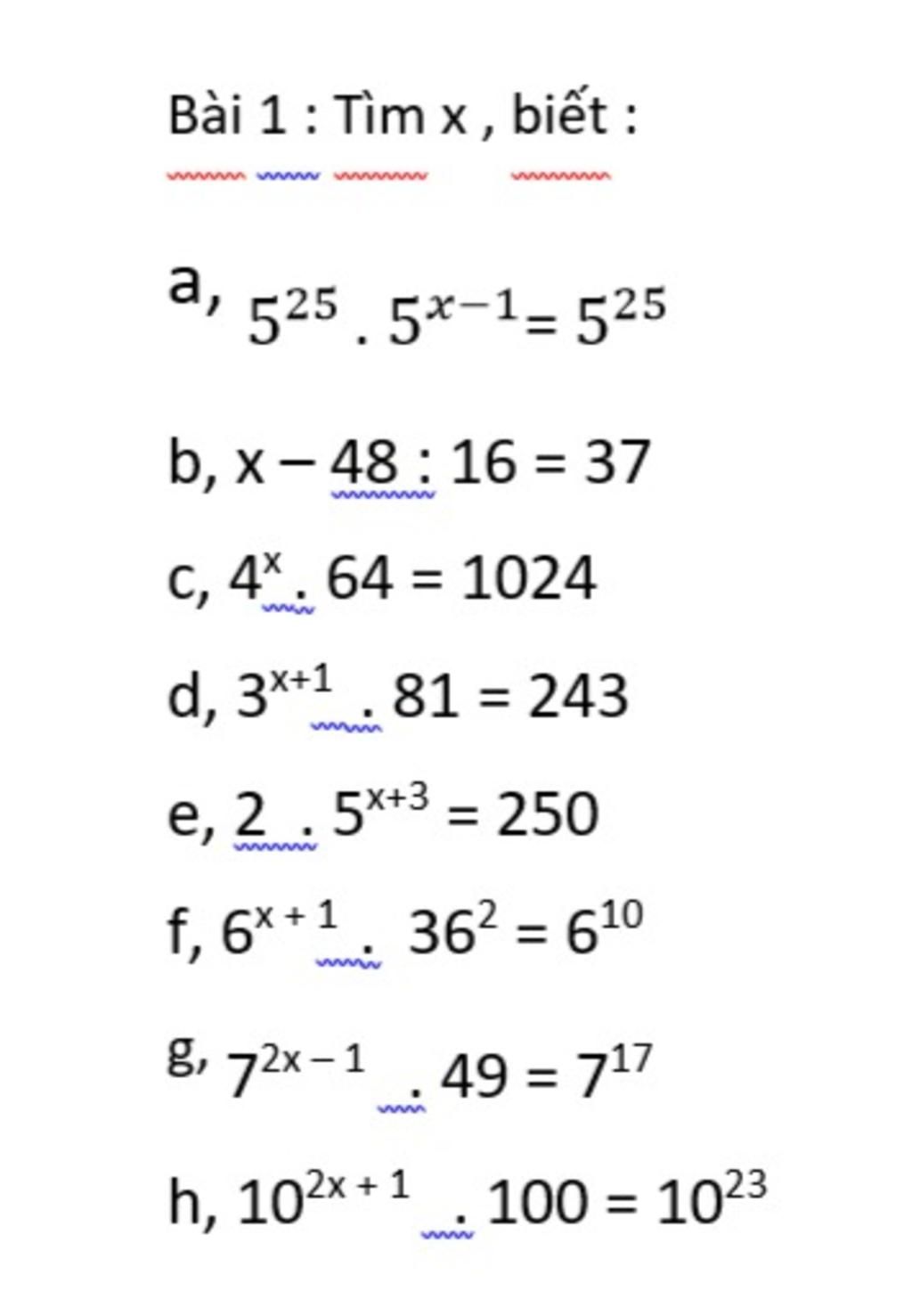 a) $5^{x-1}$ = $5^{25}$ : $5^{25}$ =1