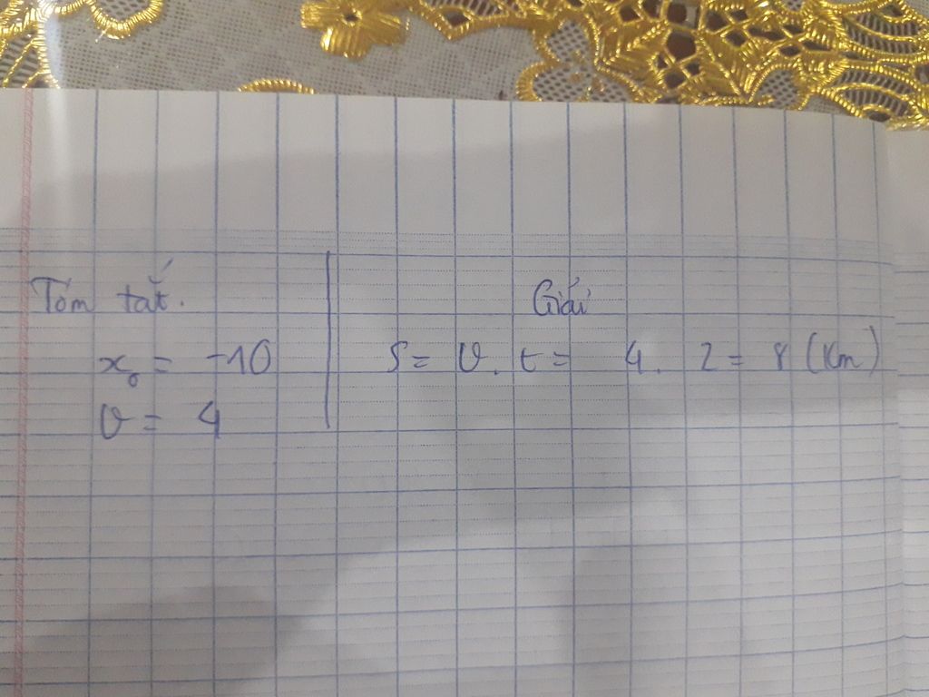 Giải thích các bước giải: S=v.t=2.4=8km