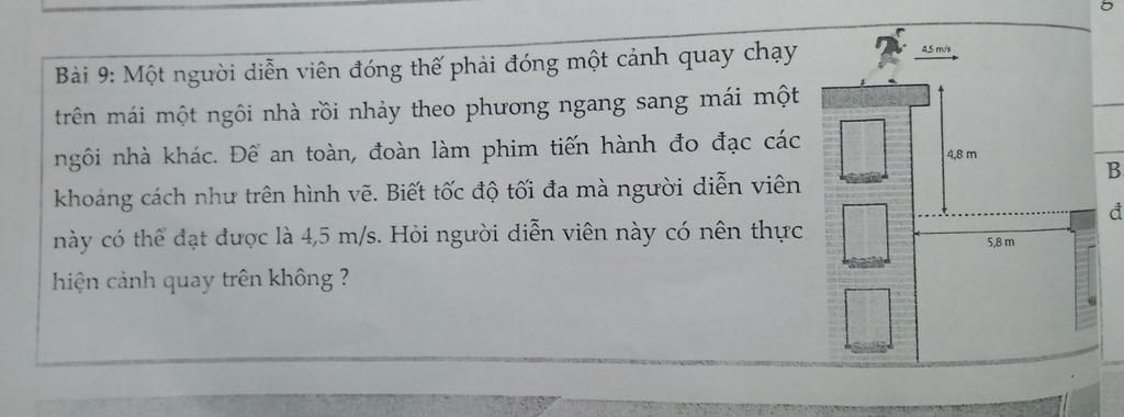 Do \({L_{\max }} < d = 5,8\left( m \right) \Rightarrow \) người này không nhảy qua được.
