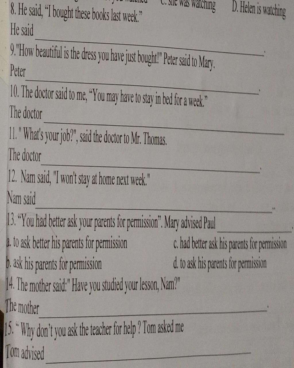 9."How beautiful is the dress you have just bought!" Peter said to Mary.