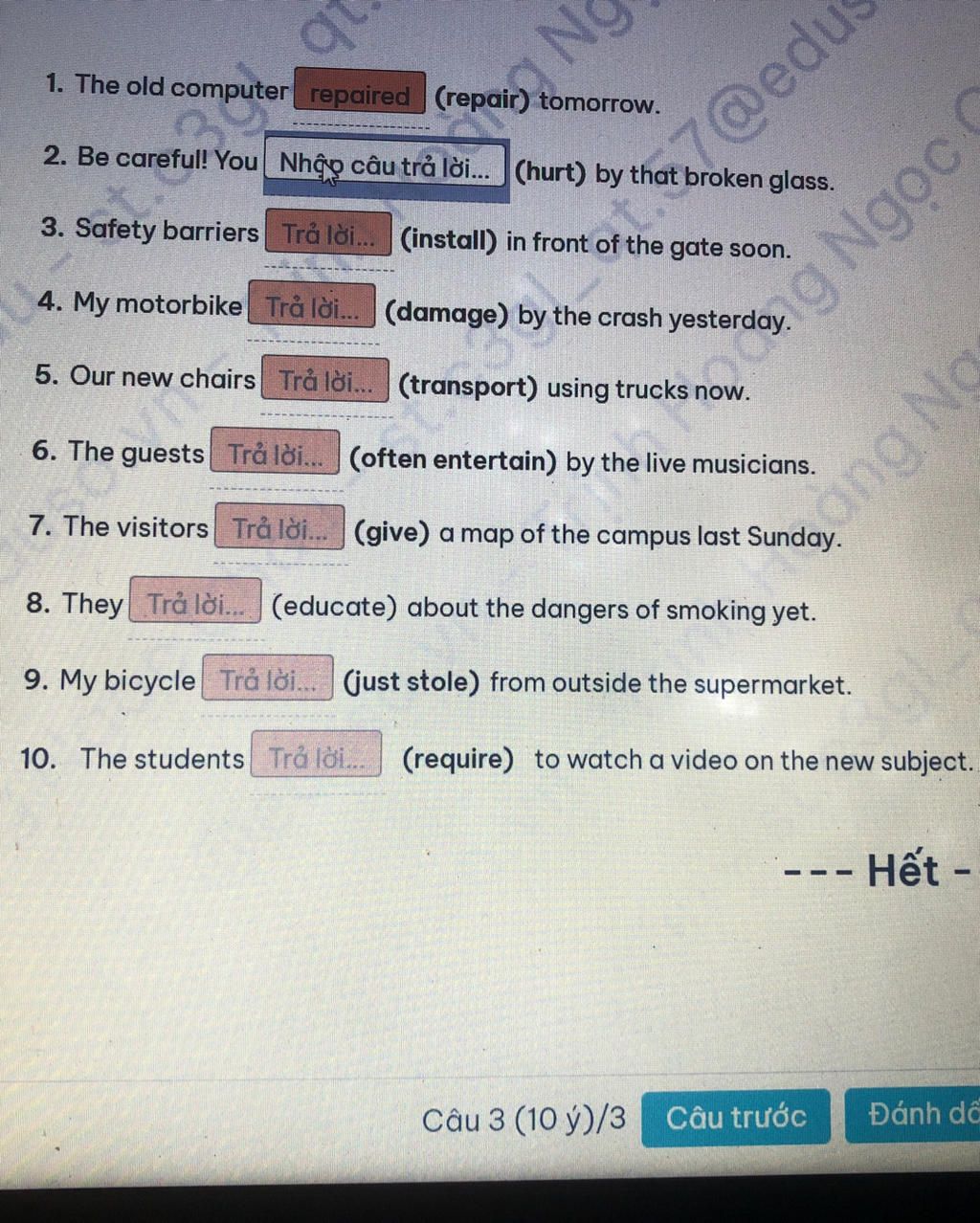 10.required ( những hsinh đã yêu cầu xem video về chủ đề mới - nên e nghĩ là quá khứ đơn ạ )