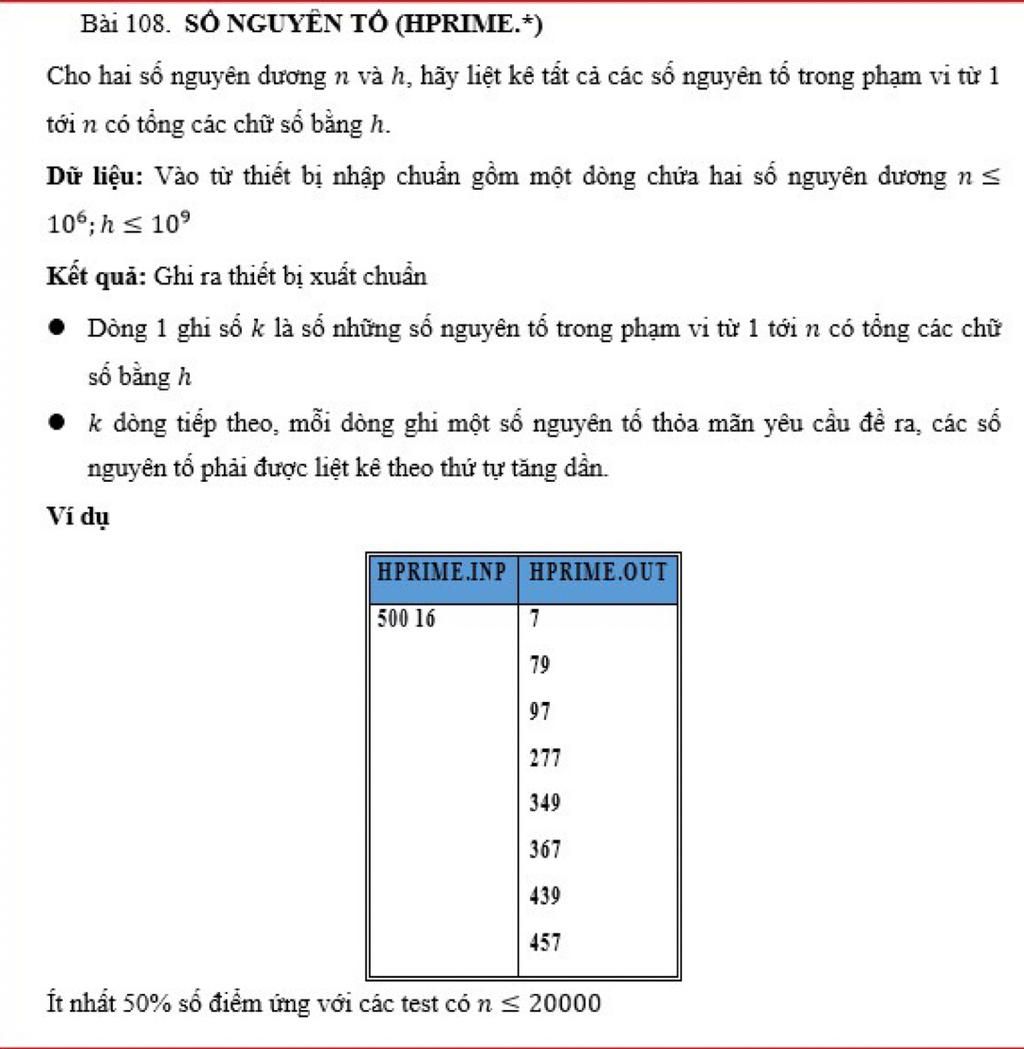 Ta thấy, do $n \leq 10^6$ nên mỗi số $x$ trong khi duyệt $1 \rightarrow n$ luôn $\leq n \leq 10^6$. Mà do ta cần tìm các số nguyên tố 1 cách thường xuyên nên ta sẽ nghĩ tới cách: duyệt trước $1 \rightarrow n$ rồi lưu các kết quả kiểm tra SNT vào 1 mảng $prime$. Ta lại nghĩ tới một cách "cổ xưa" để làm việc này: đó chính là Sàng Nguyên Tố Eratosthenes. Ta sẽ sàng nguyên tố trước khi vào vòng for để tìm đáp án như trên, việc sàng mất $N log log N$ (tức khoảng $4 \times 10^6$ phép tính, và việc truy xuất số nguyên tố sau đó sẽ không còn tốn thời gian nữa.