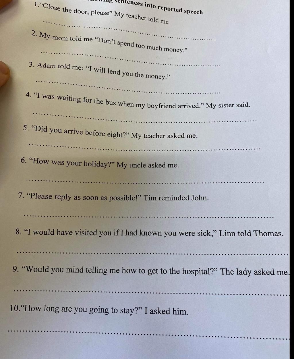 tences into reported speech