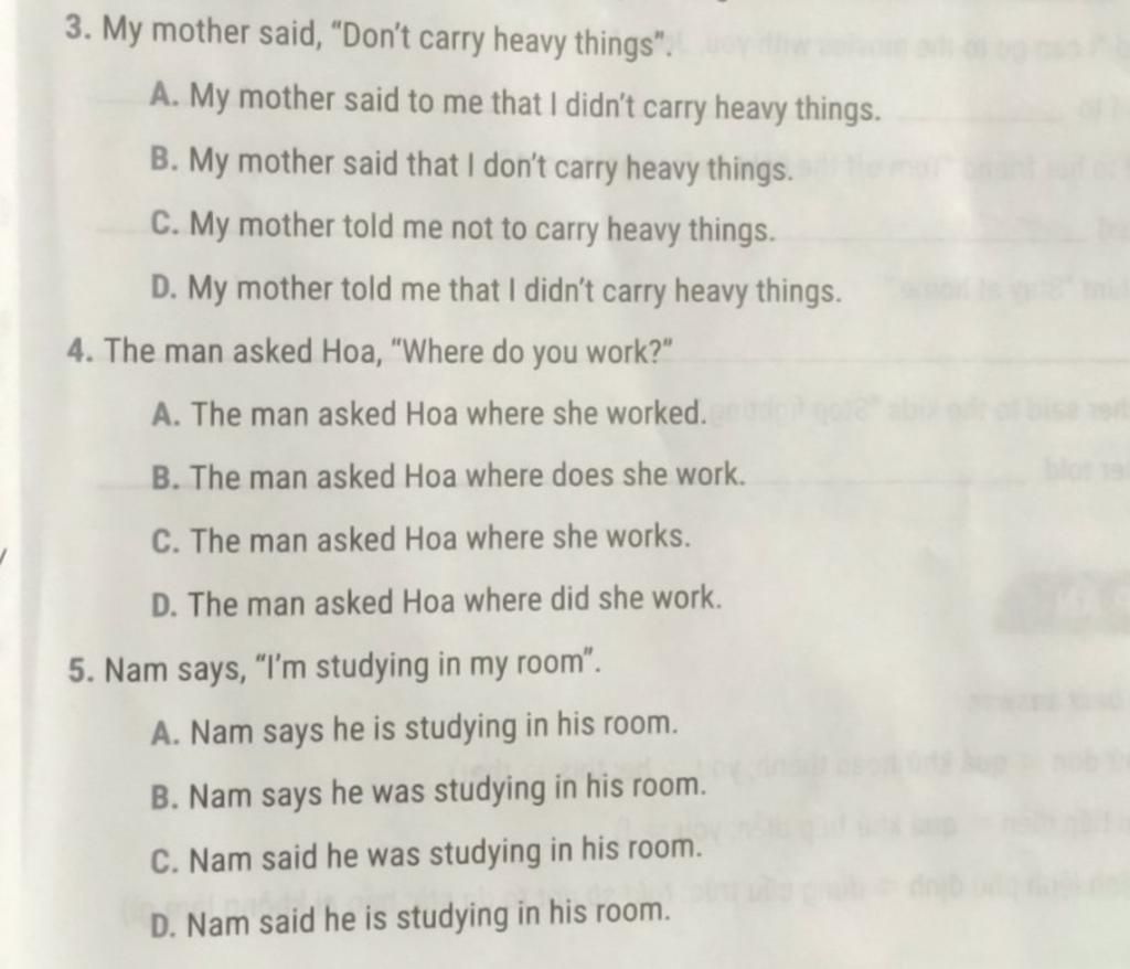 `1.C` - Câu tường thuật dạng mệnh lệnh/ sai khiến/ yêu cầu/ đề nghị/ ...: