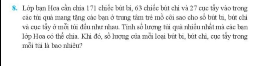 Vậy số lượng túi quà nhiều nhất mà các bạn lớp Hoa nhiều nhât là 9 túi