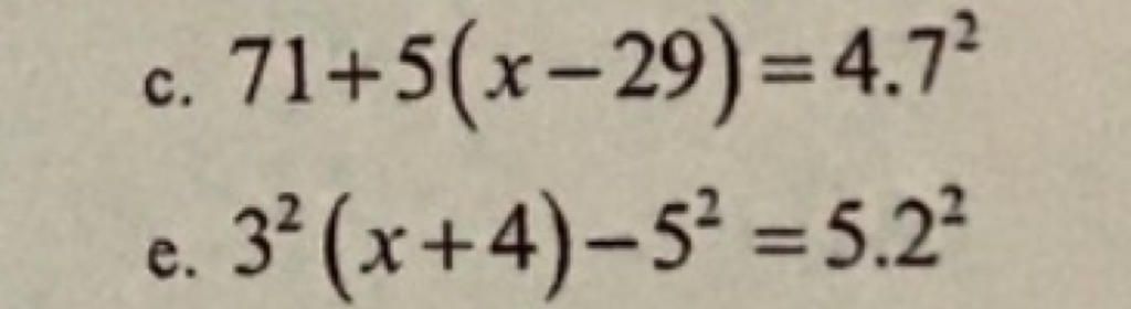`e)\ 3^(2)(x+4)-5^(2)=5.2^(2)`