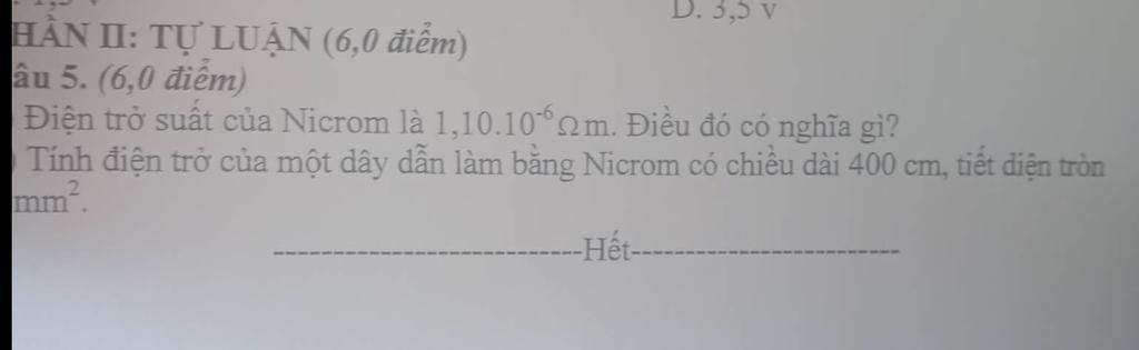 | Tính điện trở của một dây dẫn làm bằng Nicrom có chiều dài 400 cm,