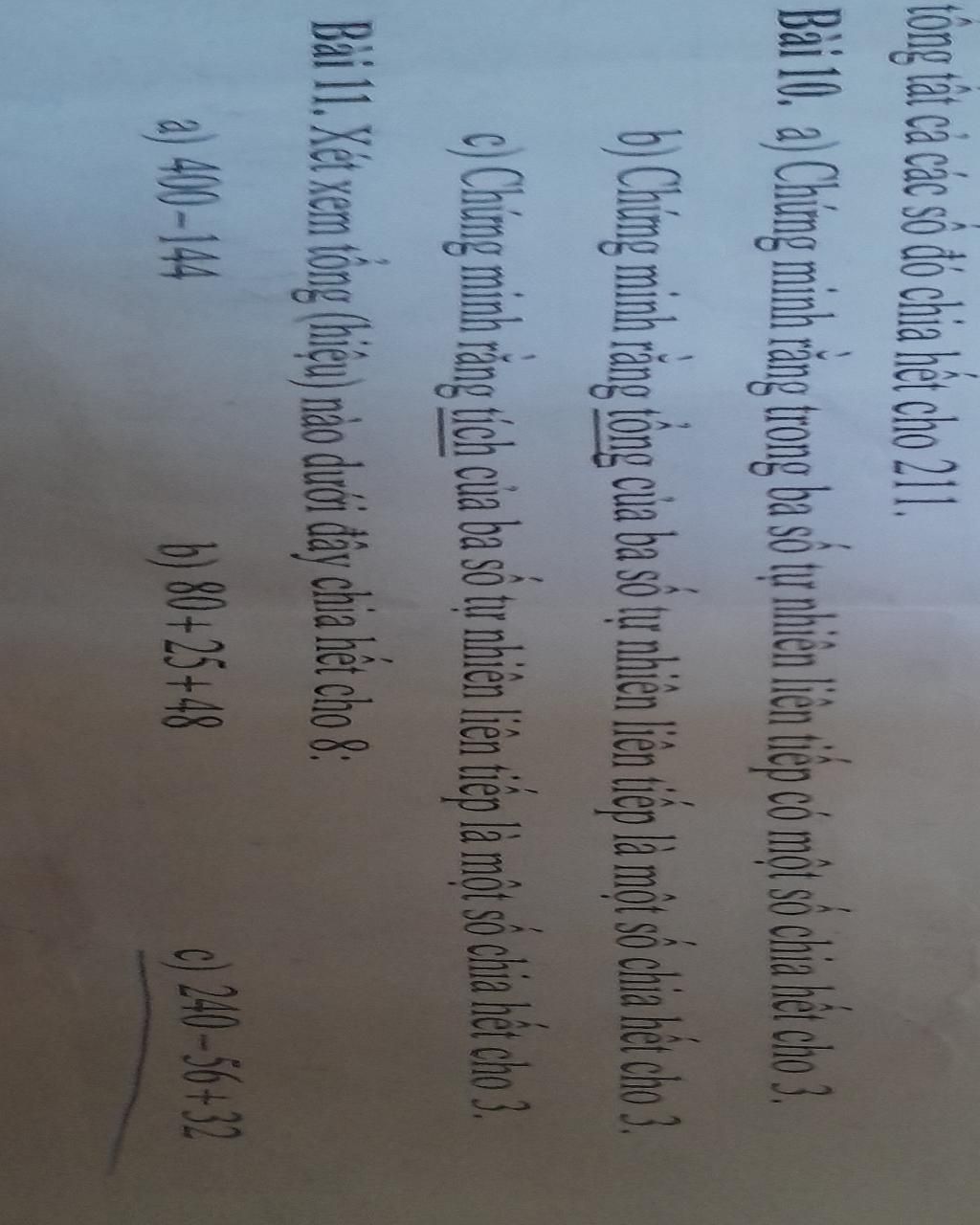 Bài11 Xét xem tổng(hiệu) nào dưới đây chia hết cho 8