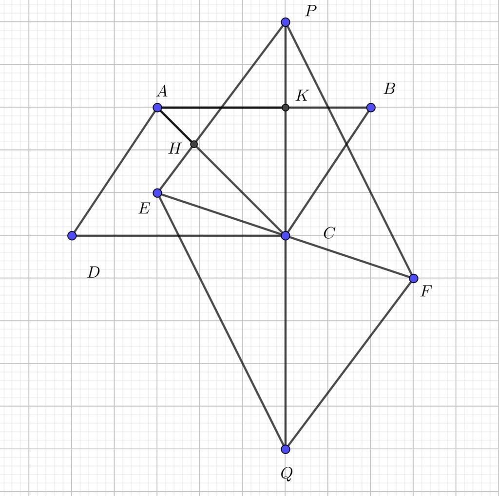` =>\hat{KBC}+\hat{KCB}=90^o=>\hat{ABC}=\hat{ECP} `