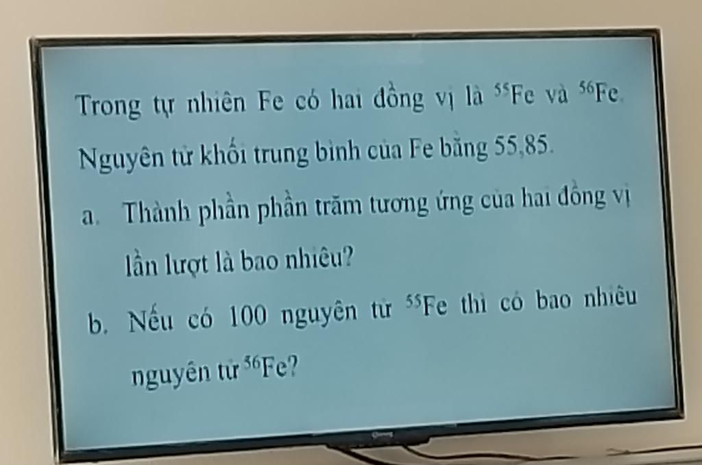 Gọi % của 55Fe=a và 56Fe = b