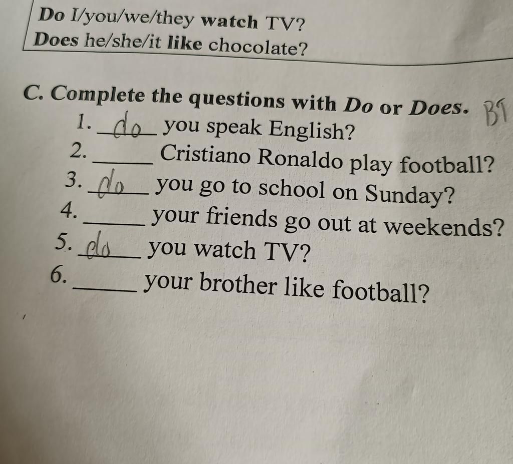 $\text{(?) Do/Does + S + V-bare + ...?}$