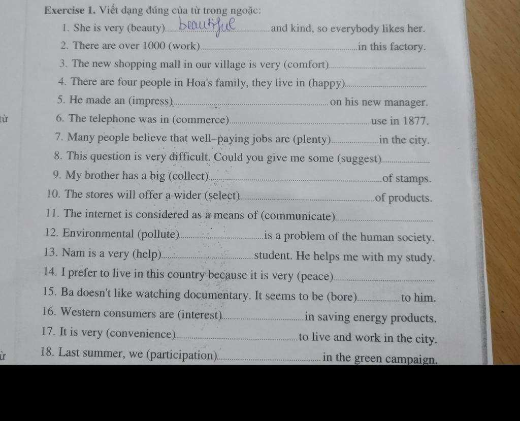 Exercise 1. Viết dạng đúng của từ trong ngoặc: