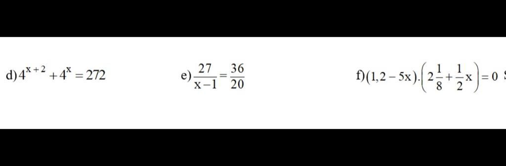 e) $\dfrac{27}{x-1}=\dfrac{36}{20}\,\,\,\left( x\ne 1 \right)$