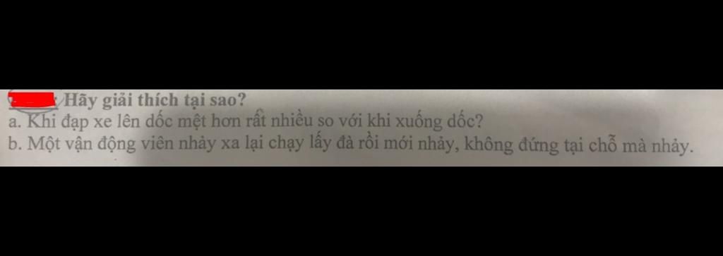 a. Ở cả hai trường hợp, ta đều phải thực hiện công. Nhưng khi lên dốc, ta phải thực hiện thêm công thắng Trọng lực (công Trọng lực lúc này đóng vai trò là công cản) để đi lên; còn khi xuống dốc, nhờ công Trọng lực (đóng vai trò làm công có ích) giúp ta đi xuống dễ dàng hơn. Nên đi lên dốc lúc nào cũng mất sức hơn đi lên dốc