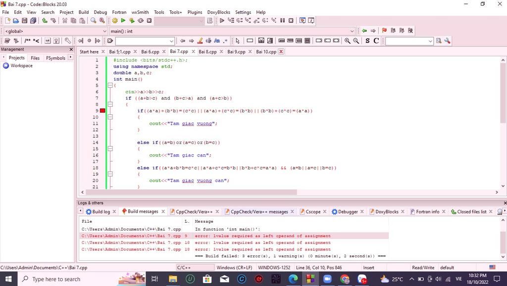 `=>` Vì vậy nên code của bạn báo lỗi ở đoạn if (...), lí do là bạn không sử dụng toán tử phù hợp.