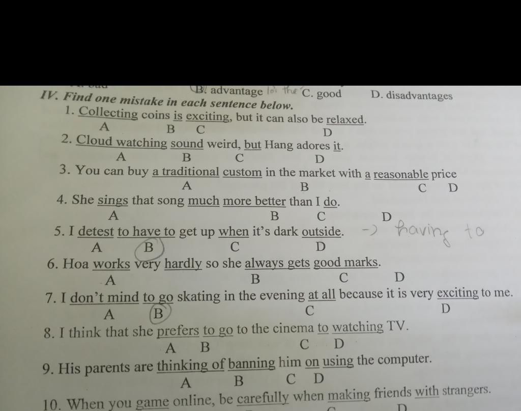 IV. Find one mistake in each sentence below.
