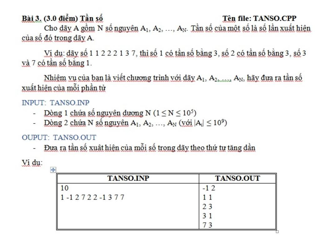 cout<<a[i]<<' '<<dem[a[i]]<<'\n';