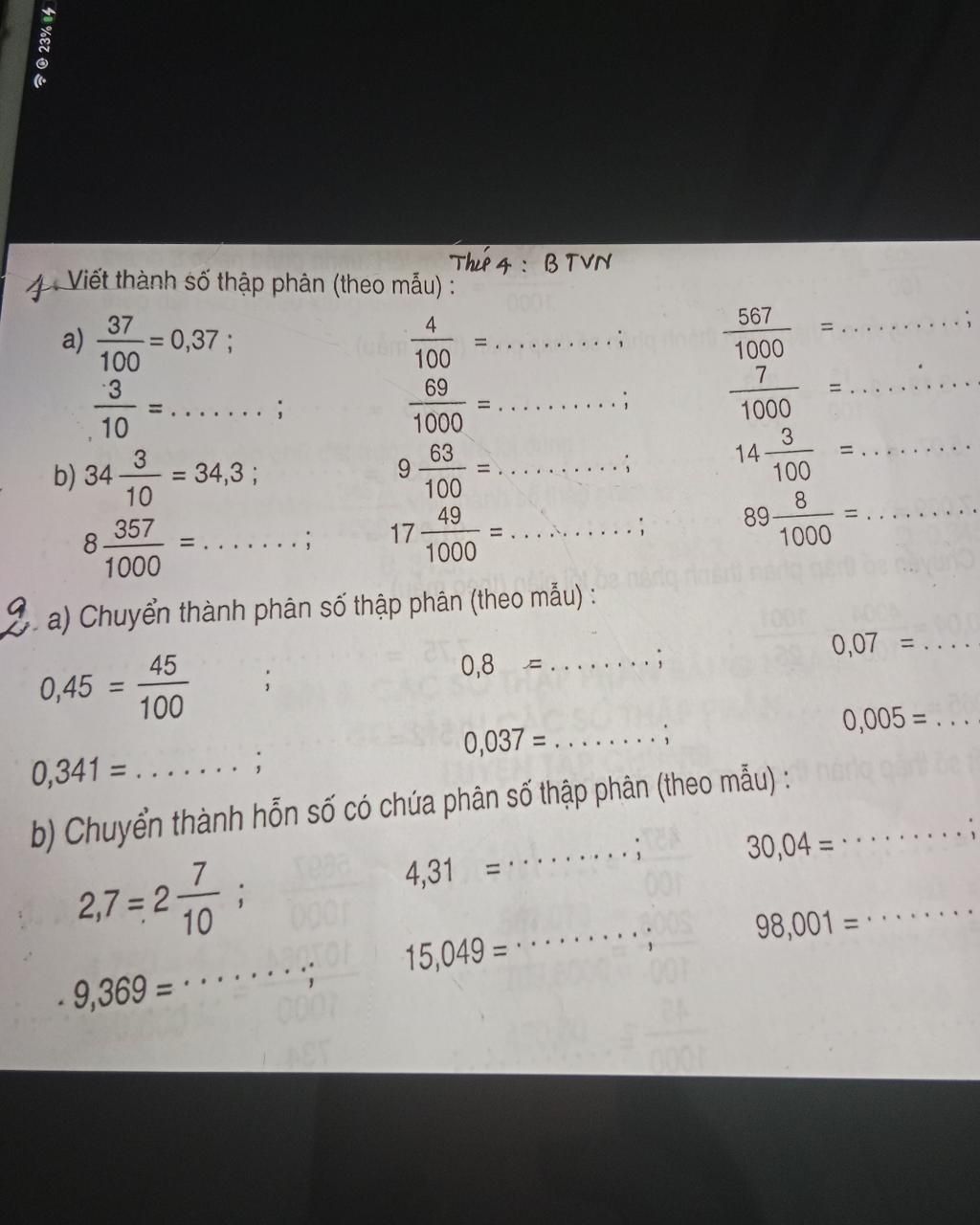 1. Viết thành số thập phân (theo mẫu):
