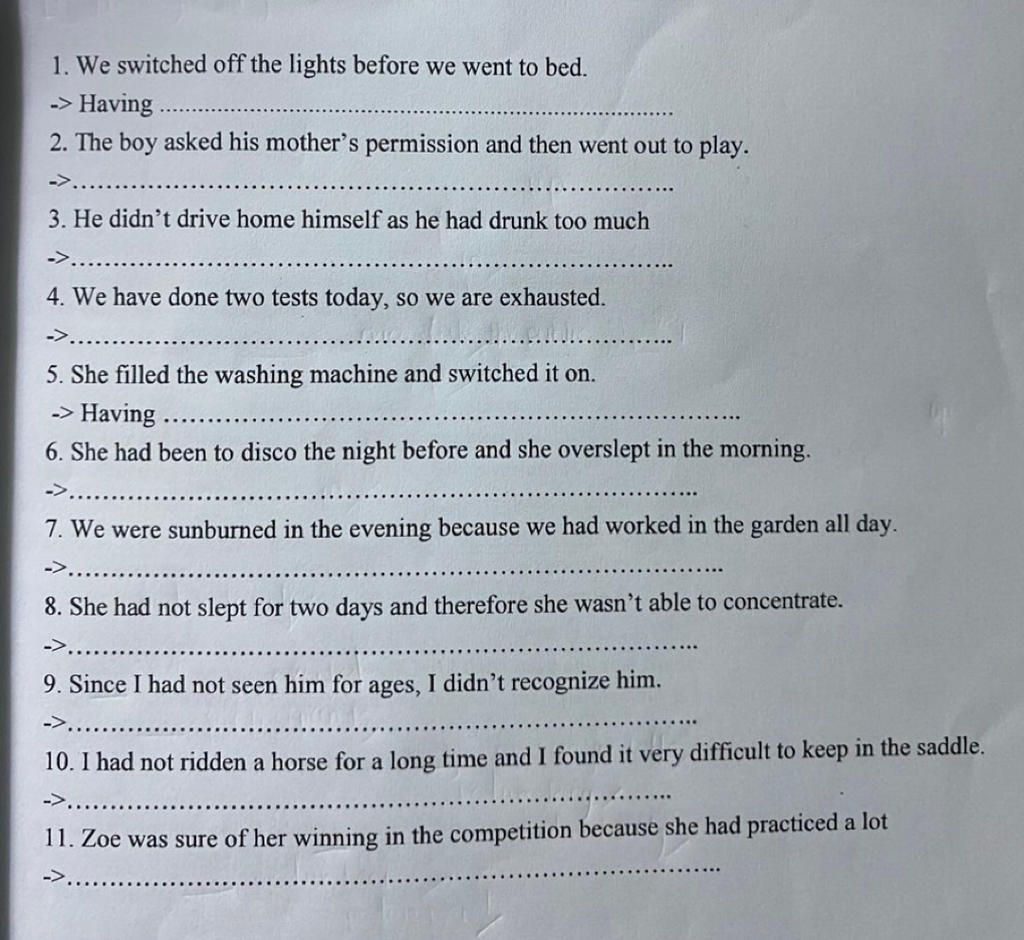 1. We switched off the lights before we went to bed.