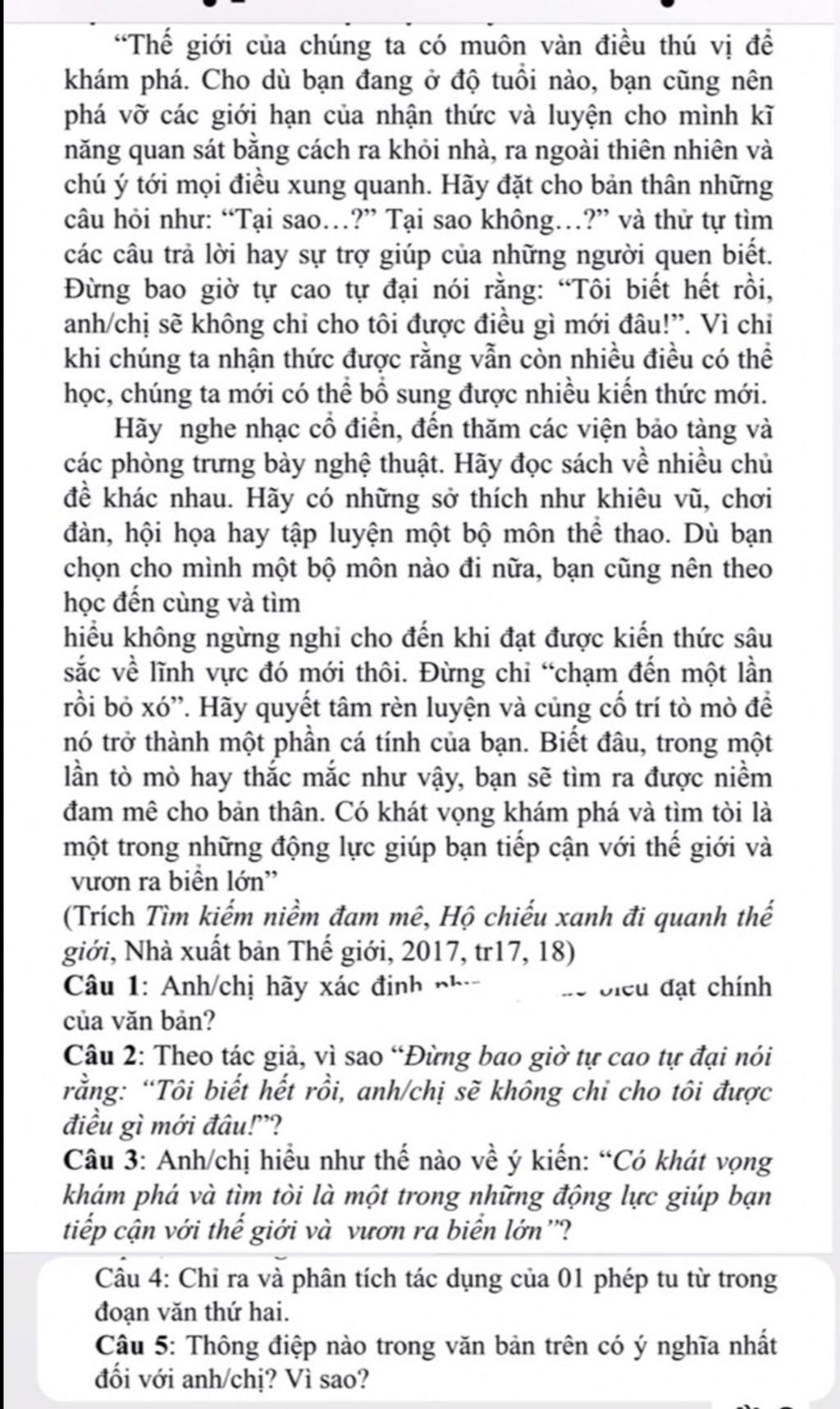+ nhấn mạnh lời khuyên, gợi ý của người viết về những hành động có thể giúp khám phá, mở rộng tầm hiểu biết