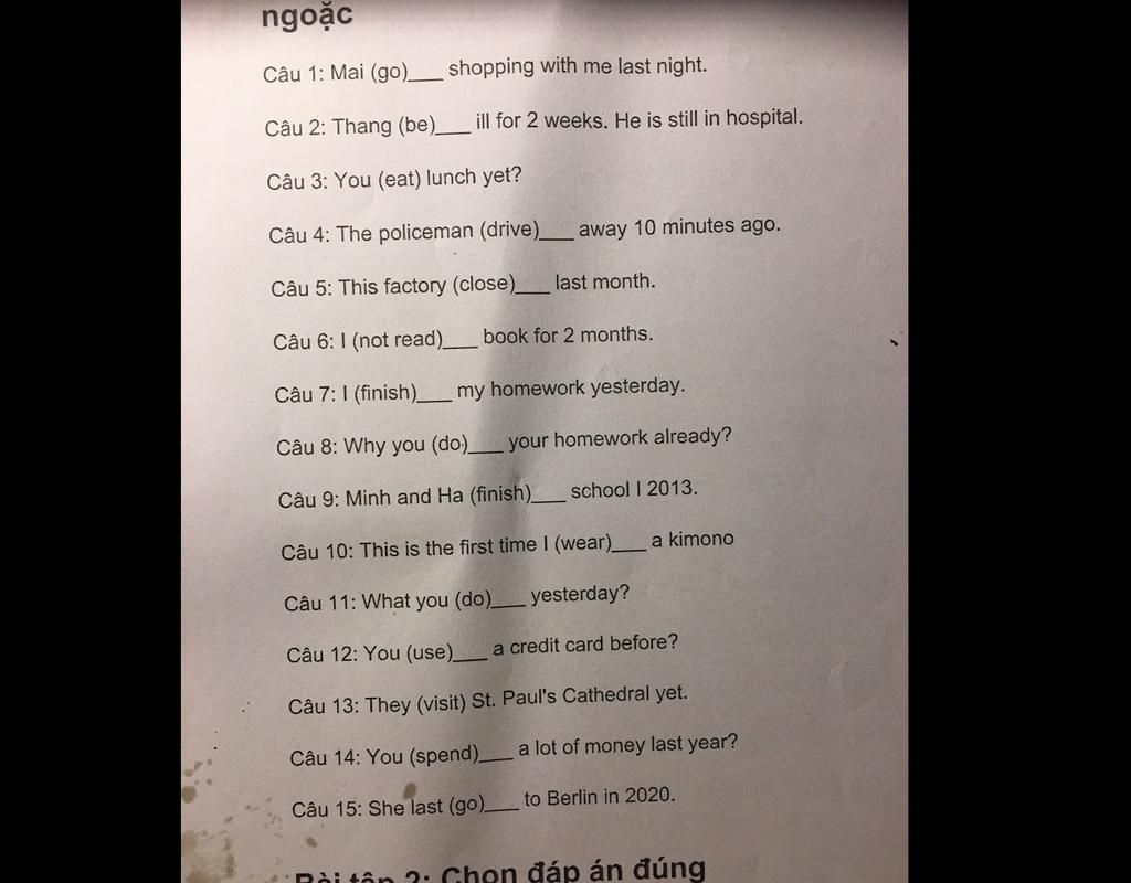 `=>` `DHNB` : yesterday , ago , last , in + Mốc thời gian trong Quá khứ , ...
