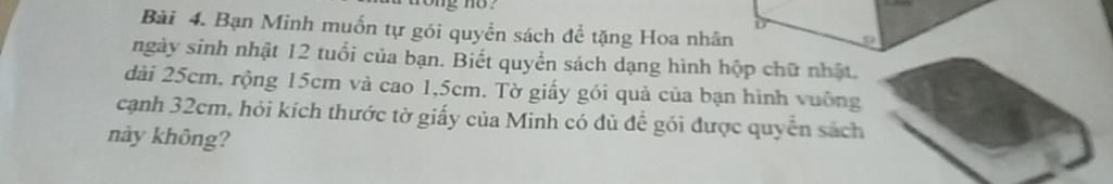 nên kích thước tờ giấy của Minh đủ để gói được quyển sách.