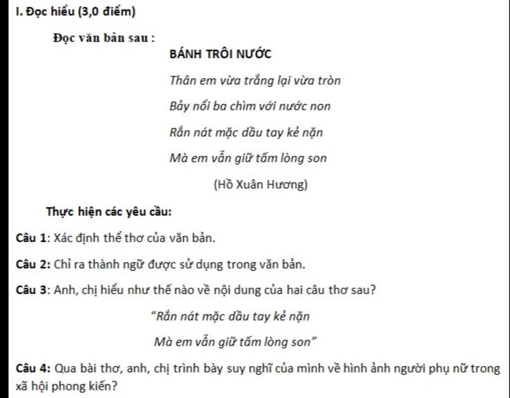Câu 3: Nội dung: muốn nói đến số phận long đong, lận đận của người phụ nữ bị vùi dập nhưng tấm lòng vẫn luôn son sắt, nguyên vẹn.