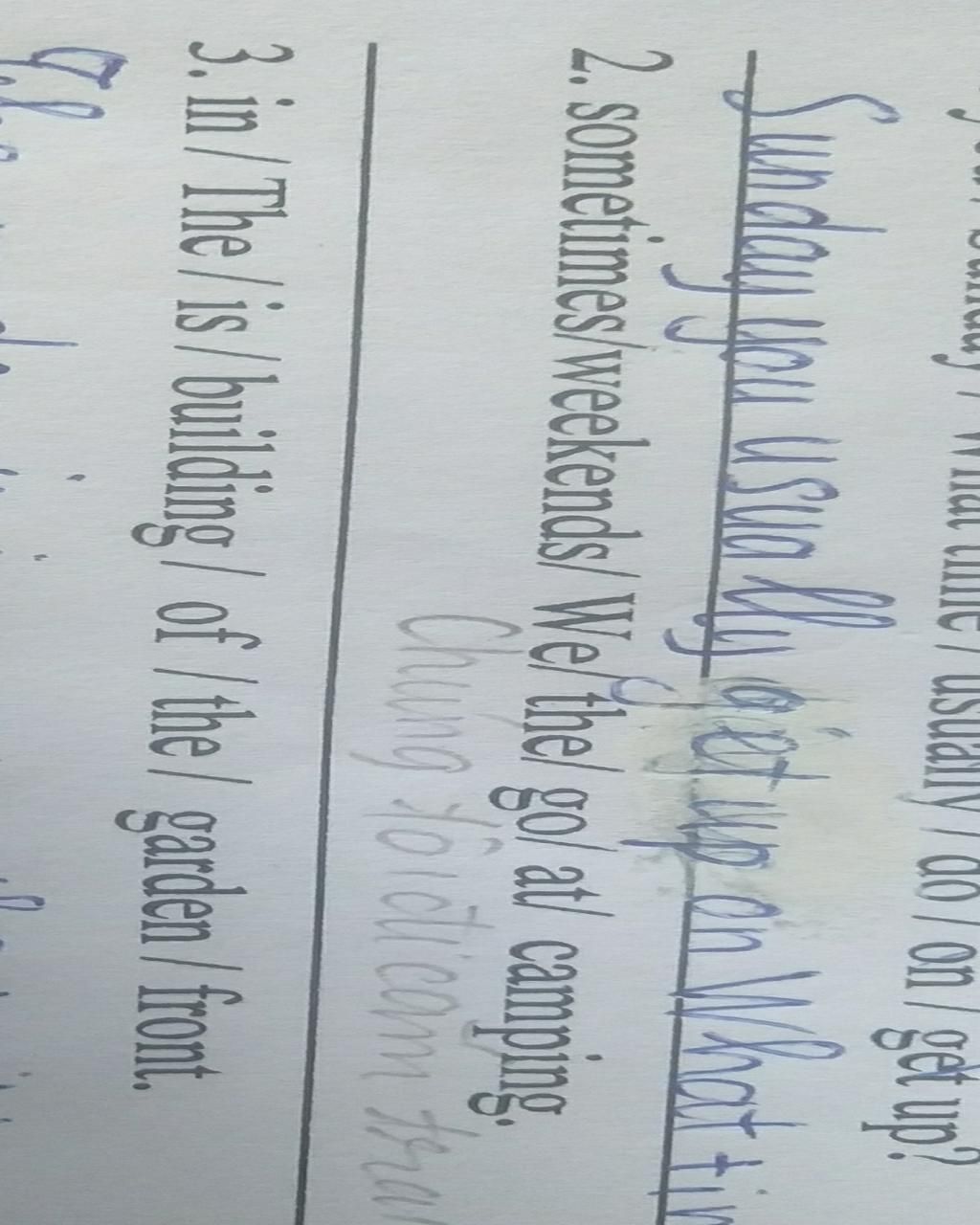 Đáp án: We sometimes go camping at the weekends.