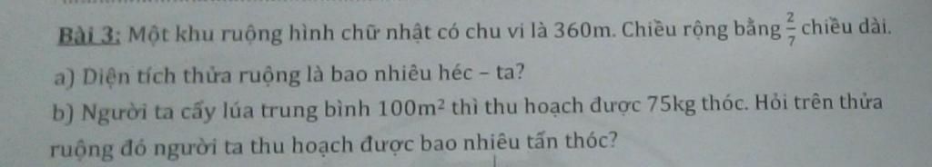 `text{Số tấn thóc người ta thu hoạch được trên cả thửa ruộng đó là:}`