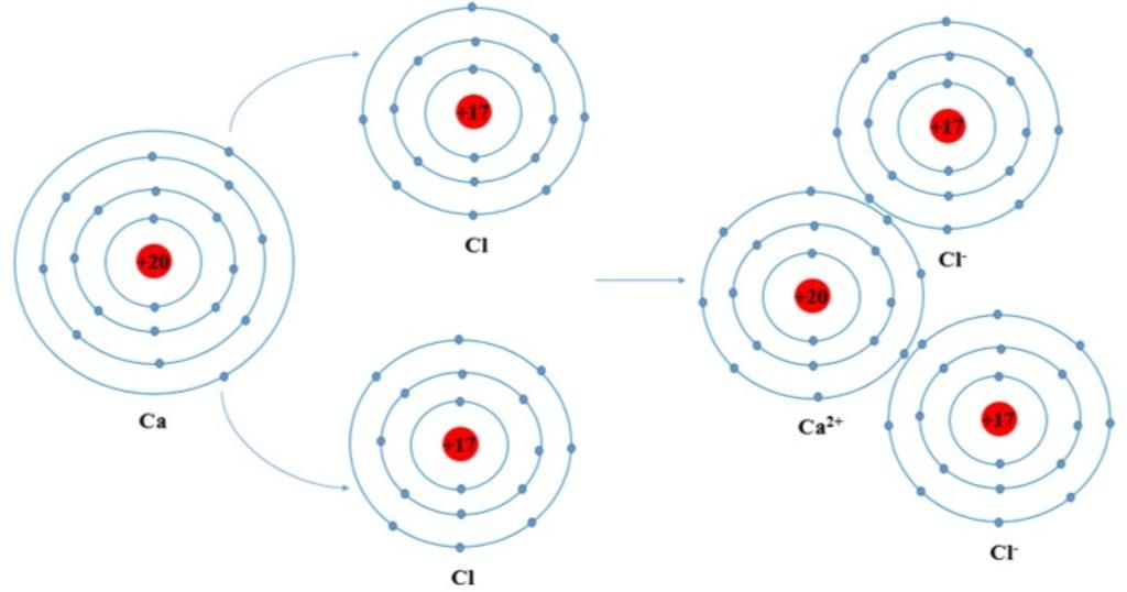 Hai Ion Ca và Cl hút nhau bằng lực hút tĩnh điện, tạo thành \(CaCl_2^{}\)