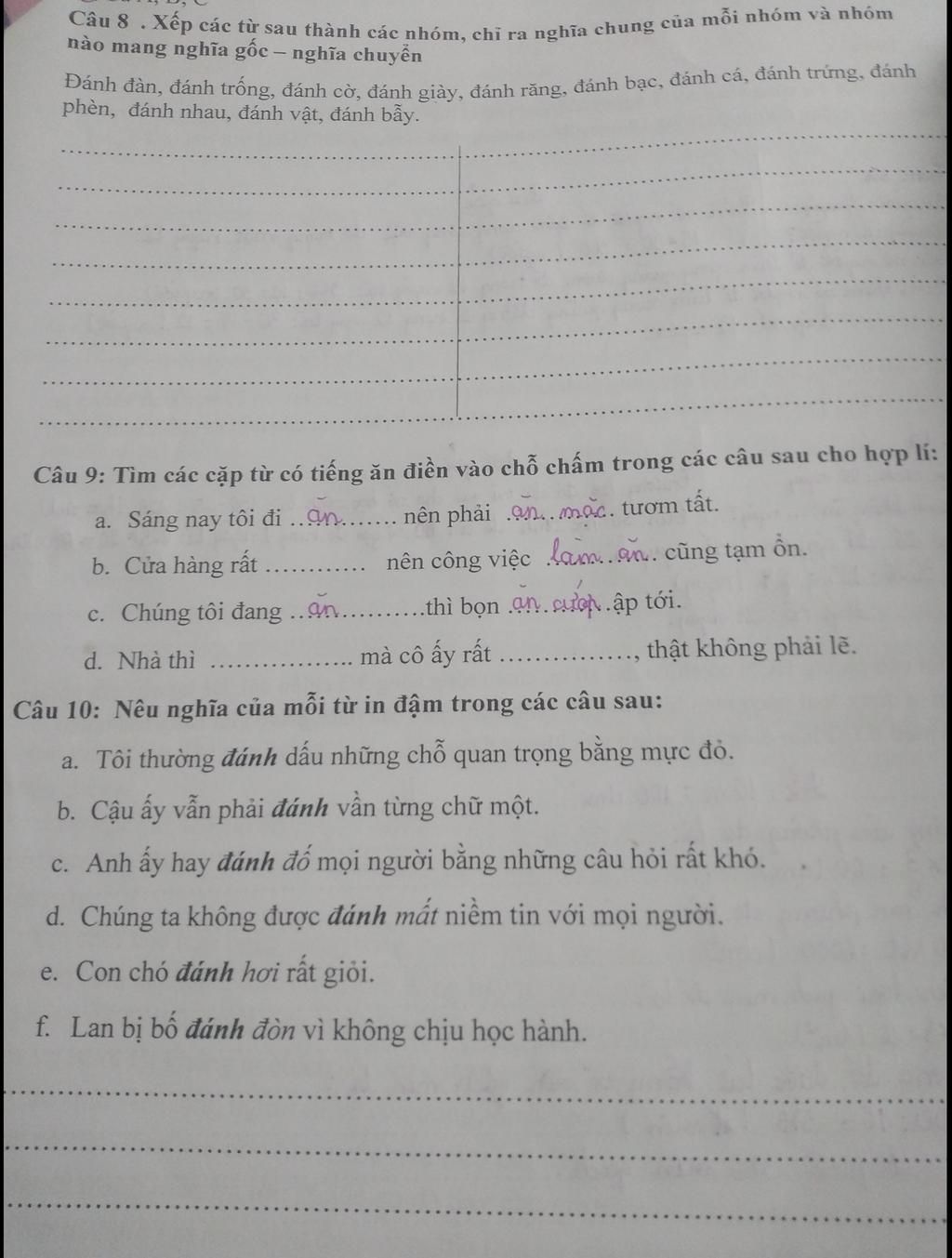 Nhóm 2: Đánh giày, đánh răng ( Nghĩa gốc)