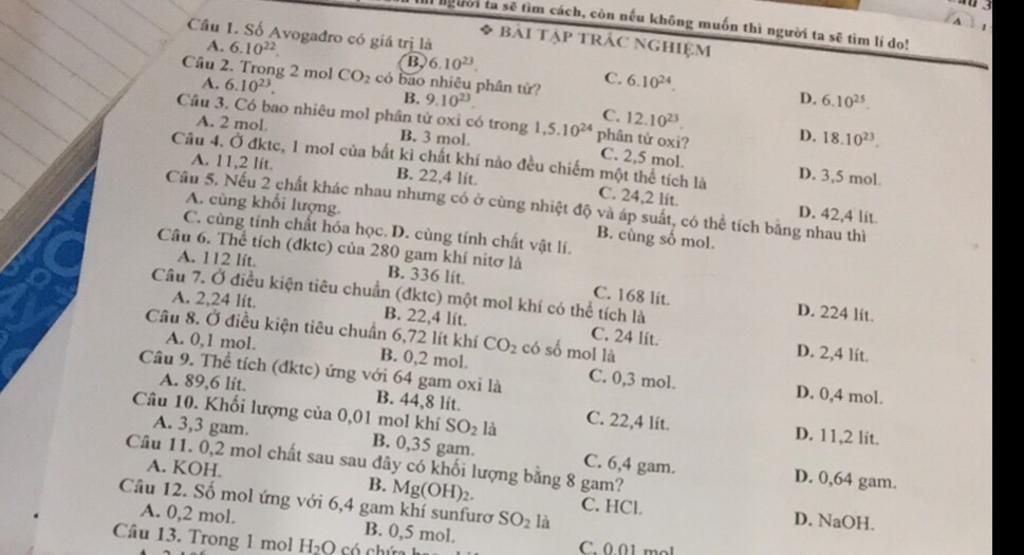Avogađro là hằng số và nó có giá trị bằng `6.10^(23)`