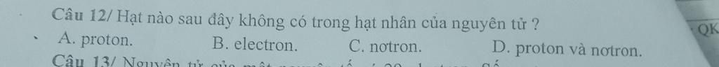 Trong hạt nhân nguyên tử có hạt proton và neutron.