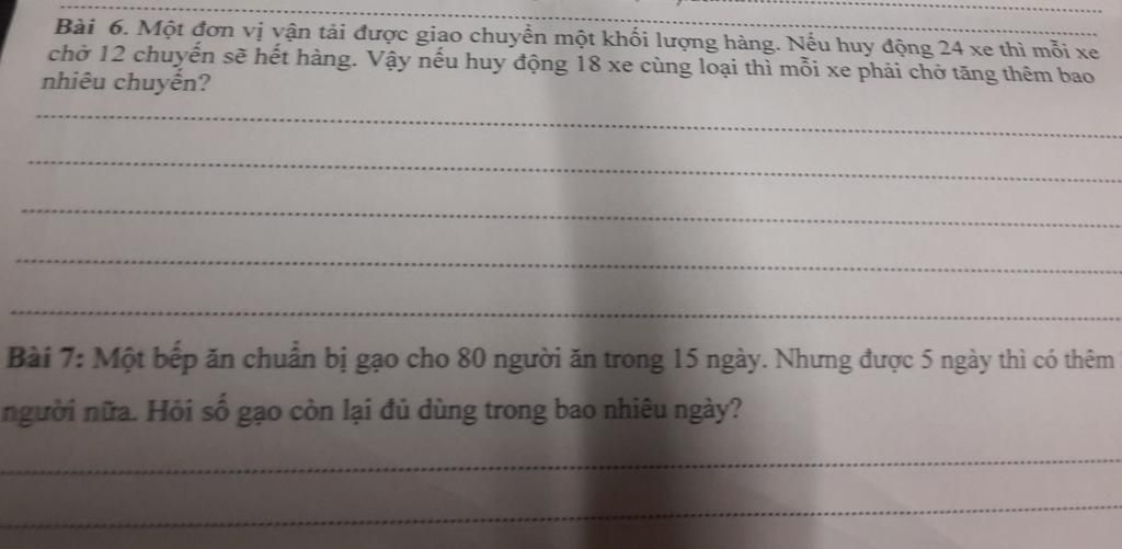 Bài 6. Một đơn vị vận tải được giao chuyển một khối lượng hàng. Nếu huy động 24 xe thì mỗi xe