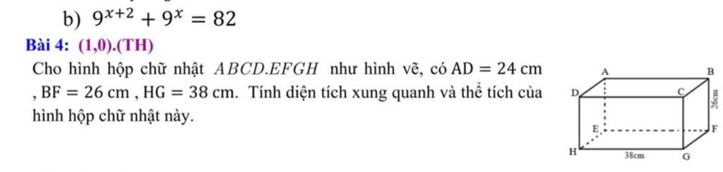 Thể tích của hình hộp chữ nhật `ABCD.EFGH` là:
