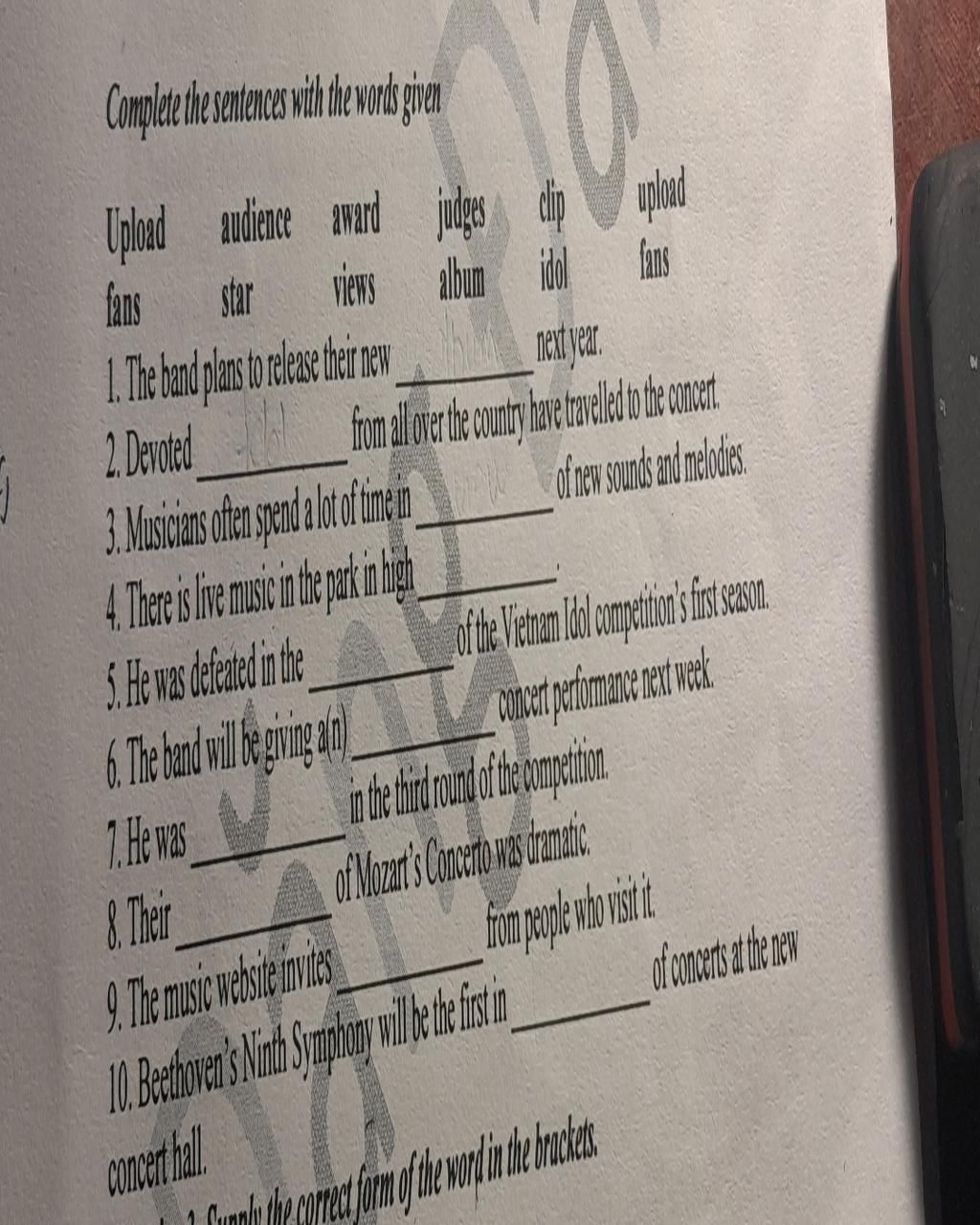 Complete the sentences with the words given