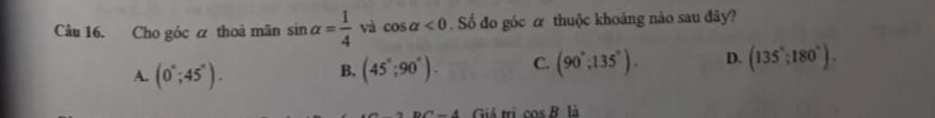 Với $90^\circ < \alpha < 180^\circ, \sin \alpha$ nghịch biến