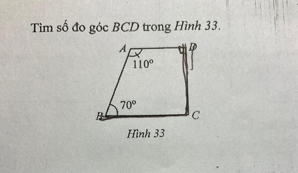 `⇒ 110^o + 90^o +` Góc `BCD + 70^o = 360^o`
