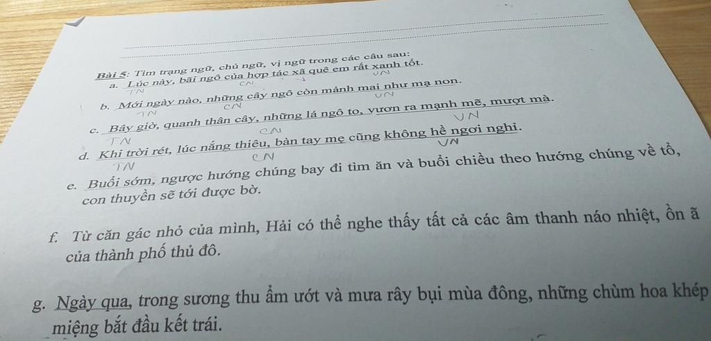 e) Trạng ngữ : Buổi sớm ; buổi chiều