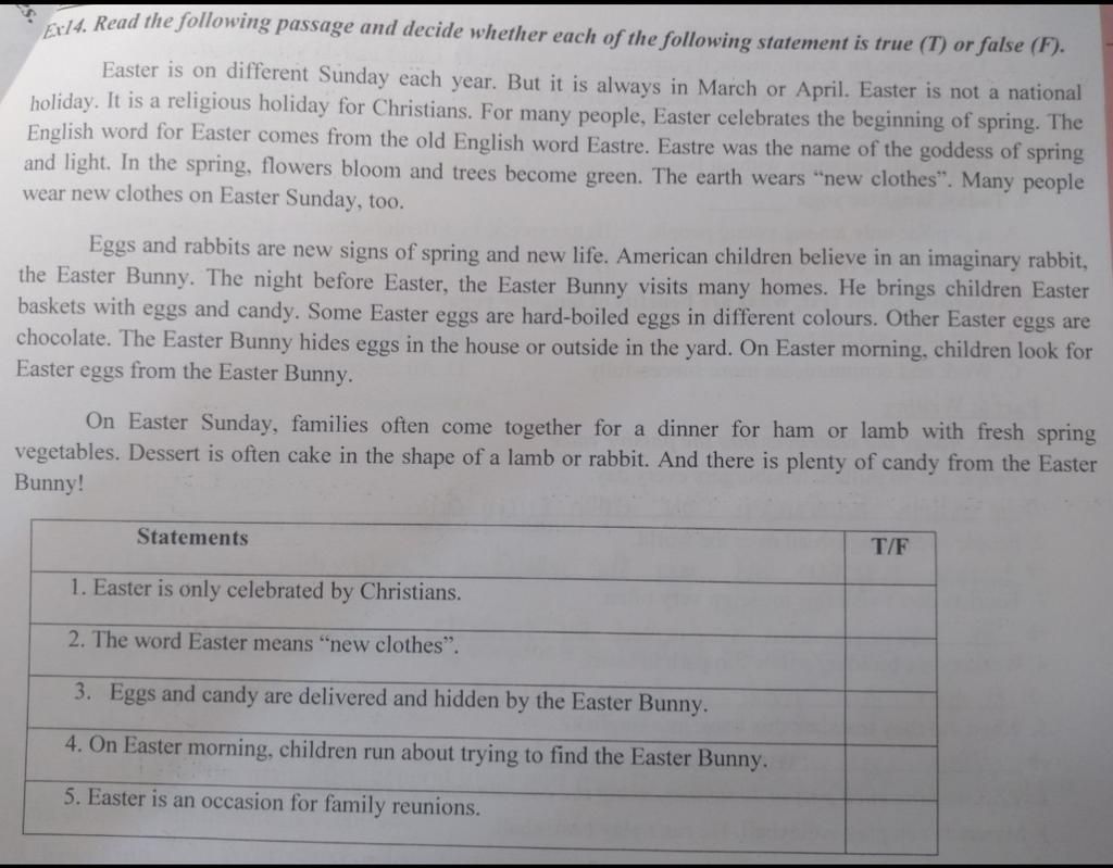 Ex14. Read the following passage and decide whether each of the following statement is true (T) or false (F).