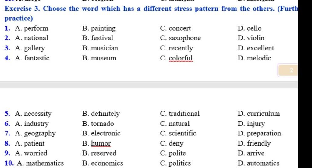 10. C. (Trọng âm 1 còn lại trọng âm 3)