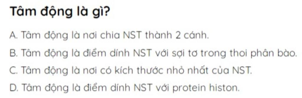 D. Tâm động là điểm dính NST với protein histon.