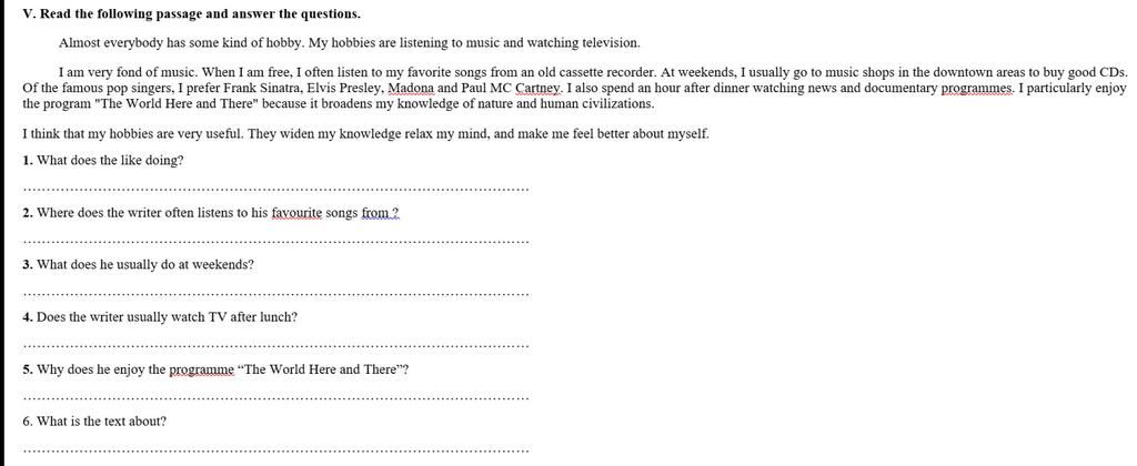 `1.` He likes listening to music and watching television.