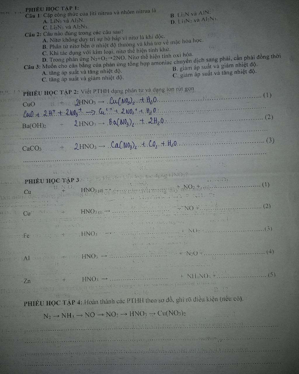 Câu 1: Cặp công thức của liti nitrua và nhóm nitrua là