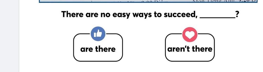 - Nếu mệnh đề chính có cấu trúc "There is/are..." thì phần đuôi chia "is/are + there"?