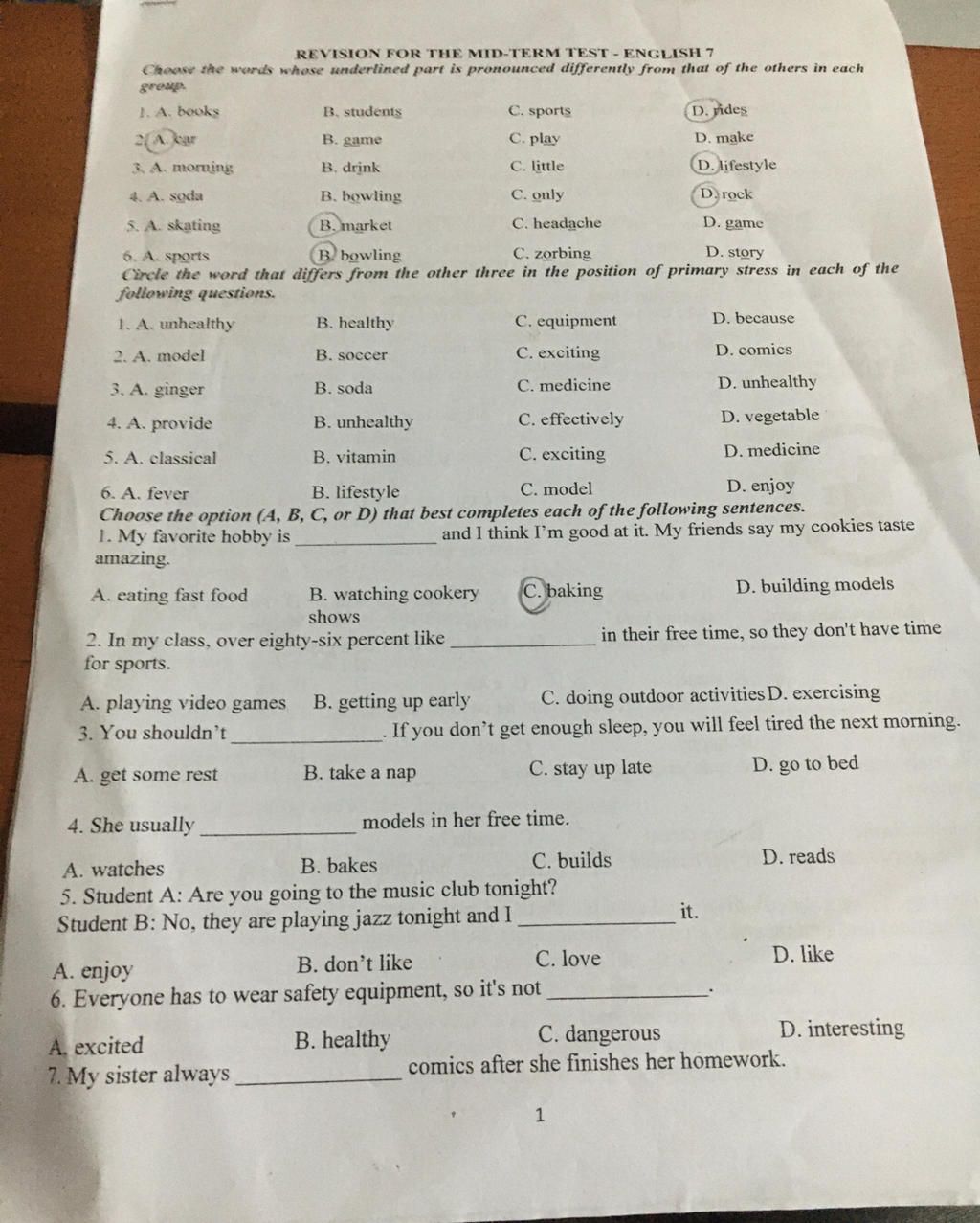 1. A. unhealthy