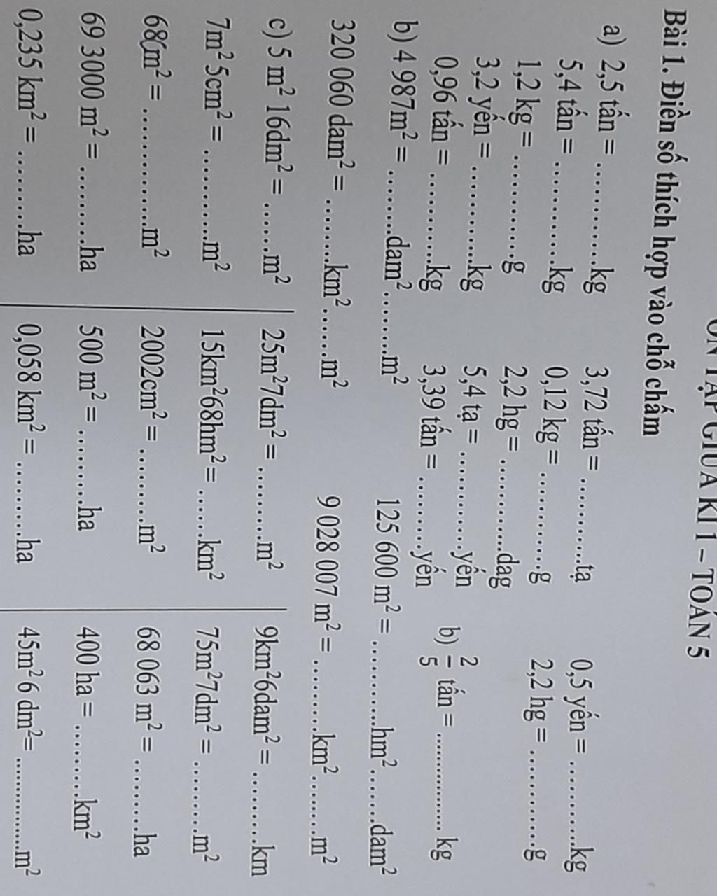 a) 2,5 tấn = 250 kg b) $\frac{2}{5}$ tấn = 400 kg